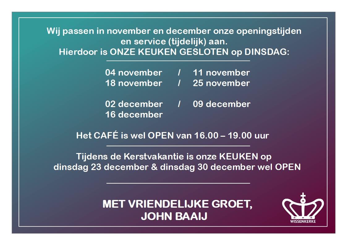 OPENINGSTIJDEN VAN ONZE KEUKEN: